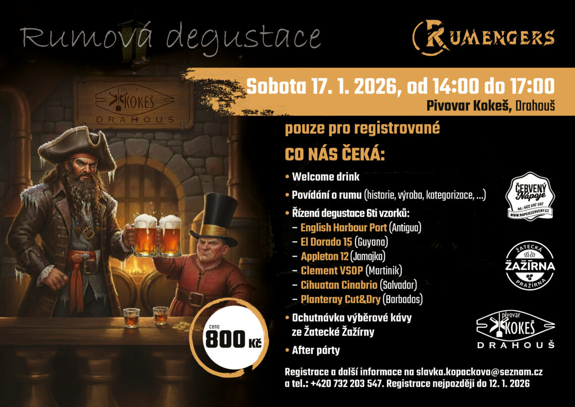 Srdečně vás zveme 17.1.2026 na první Rumovou degustaci s vůní kávy. Registrace na emailu: slavka.kopackova@seznam.cz. Více info v přiloženém plakátu